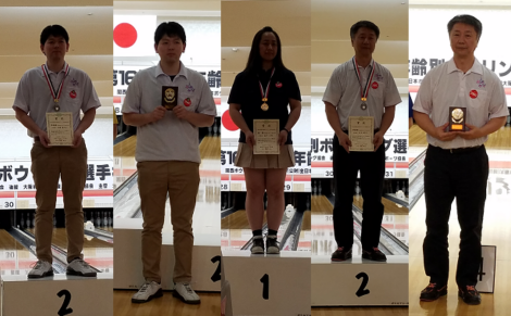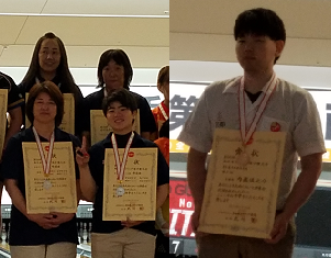 7/6・7の2日間、奈良県のオプトボウルタカダで開催された国民体育大会近畿ブロック大会に成年男子1名、成年女子2名の計3名が京都府代表として出場しました。内藤が、成年男子4人チーム戦で第2位入賞しましたが、成年男子、成年女子ともに本大会出場権は獲得できませんでした。 |